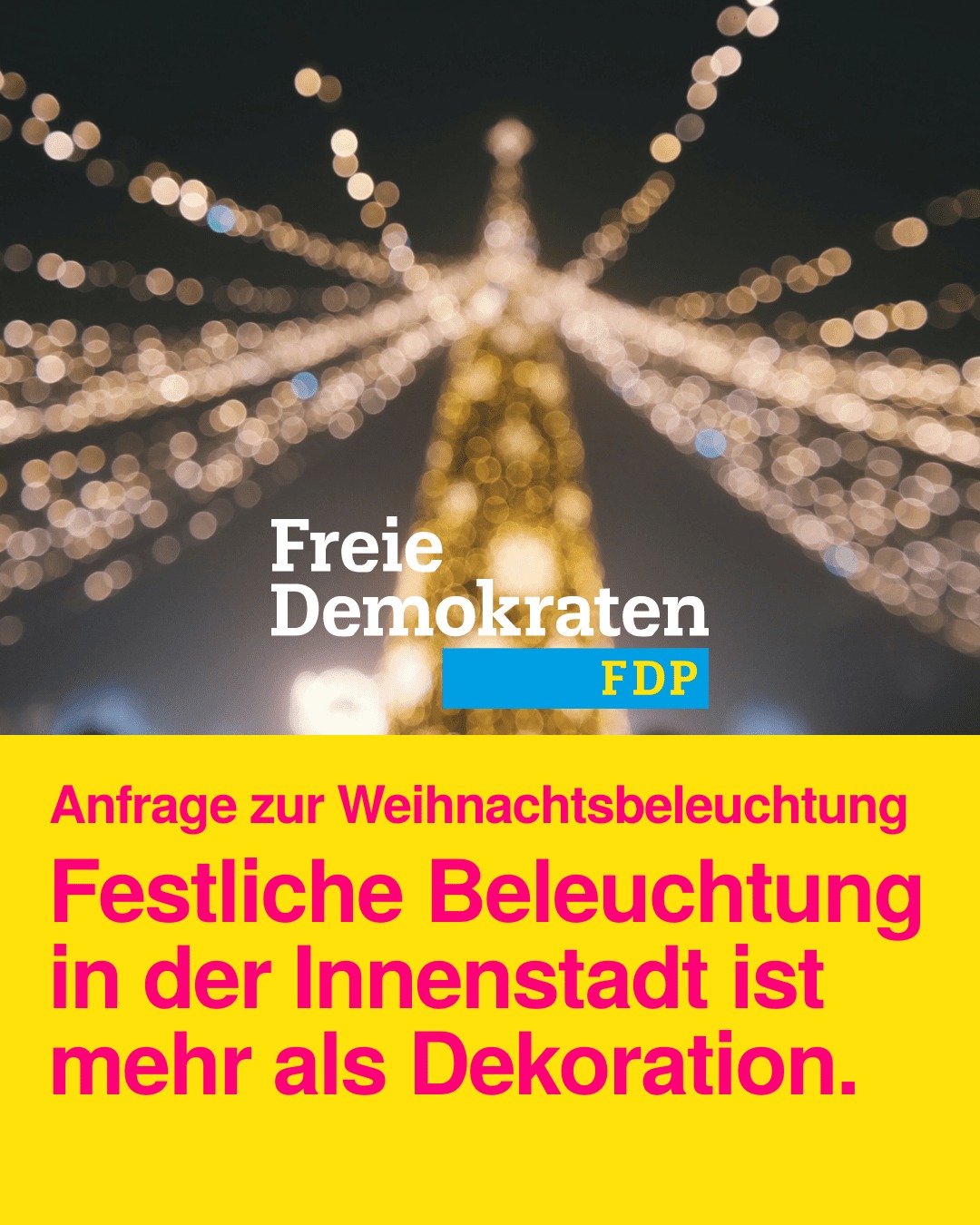 In Gesprächen mit Bürgerinnen und Bürgern sowie in den sozialen Medien wurde zuletzt kritisiert, dass die Weihnachtsbeleuchtung in der Gelderner Innenstadt fehlt oder nicht ausreichend ist. Viele äußern zudem ihren Unmut über ein relativ tristes Stadtbild in der Adventszeit. Als Freie Demokraten nehmen wir diese Sorgen ernst und haben deshalb eine Anfrage an die Stadtverwaltung gestellt. Was wir konkret nachfragen: ❓ Ist noch eine festliche Beleuchtung für dieses Jahr geplant? 🛑 Falls nicht oder nur eingeschränkt – warum? 💡 Gibt es das neue bzw. überarbeitete Lichtkonzept? Wie ist der Stand? 👥 Wurden Werbering, Anwohner, Handel und Gastronomie eingebunden? 🎁 Welche Alternativen oder Übergangslösungen gibt es für mehr weihnachtliche Atmosphäre? Unsere Begründung: Eine attraktive Weihnachtsbeleuchtung ist mehr als reine Dekoration, sie macht die Innenstadt lebendiger und sorgt für ein positives und festliches Stadtbild, das sowohl Wohlbefinden als auch das Sicherheitsempfinden gerade in der dunklen Jahreszeit stärkt. Beleuchtete Plätze und Straßen bringen Menschen zusammen, fördern den lokalen Handel und setzen ein Zeichen der Wertschätzung für alle, die hier leben und einkaufen. Viele Städte zeigen: Mit innovativer, sparsamer LED-Technik lässt sich energieeffizient eine festliche Stimmung schaffen! 💡🎄 Wir wollen mit unserer Anfrage eine transparente Basis zum Sachstand und zu den Planungen der Stadtverwaltung erfragen, um weitere Schritte in die Wege leiten zu können. Wir wollen, dass unsere Innenstadt in der Adventszeit festlich erstrahlt! 💫 ℹ Die ganze Anfrage und unsere PM mit Stimmen von @rita.baxmann und @wrobel_christian findet ihr in der Bio!